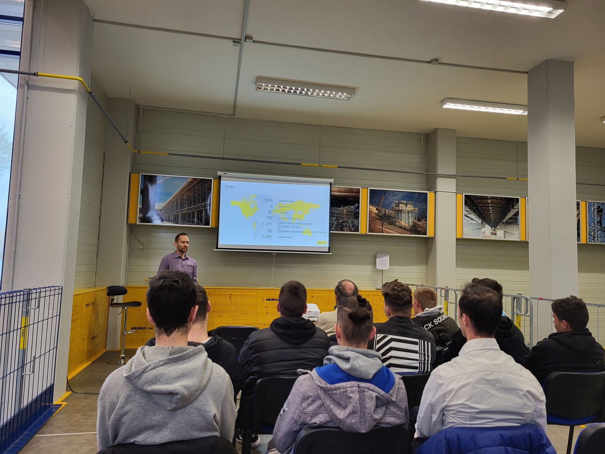 A második napon a DOKA telephelyén a zsalurendszerek fajtáival, azok összeszerelésével, valamint a telephelyen végzett logisztikai és karbantartási munkákkal ismerkedtek meg.